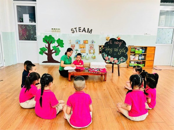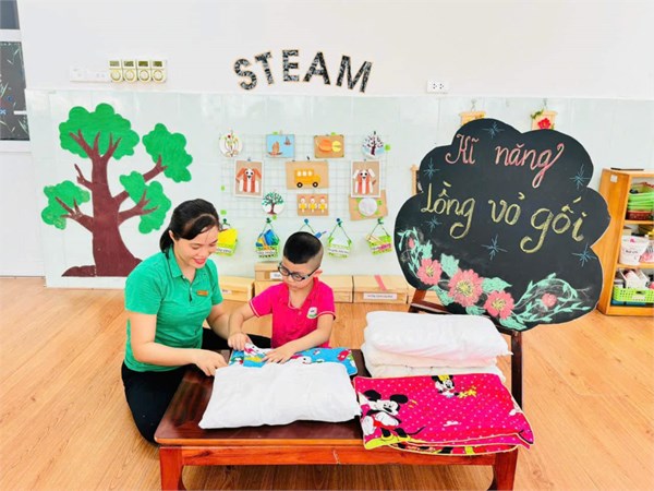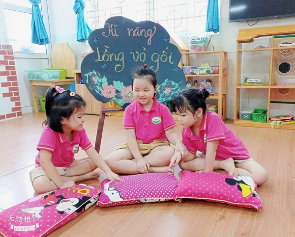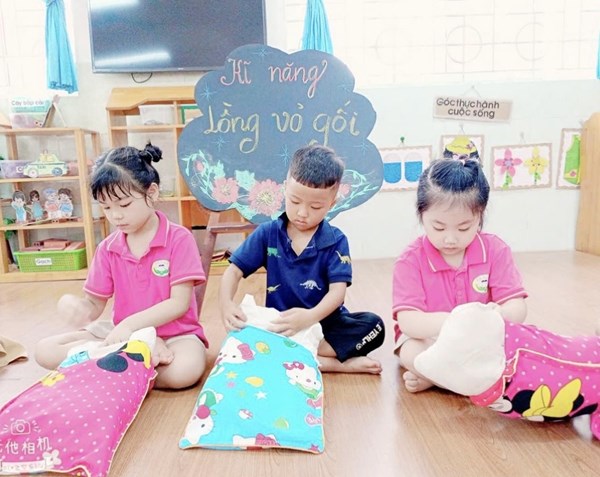 Tập ảnh : Các bé lớp MG lớn A1 với hoạt động kĩ năng "Lồng vỏ gối"