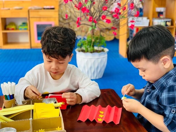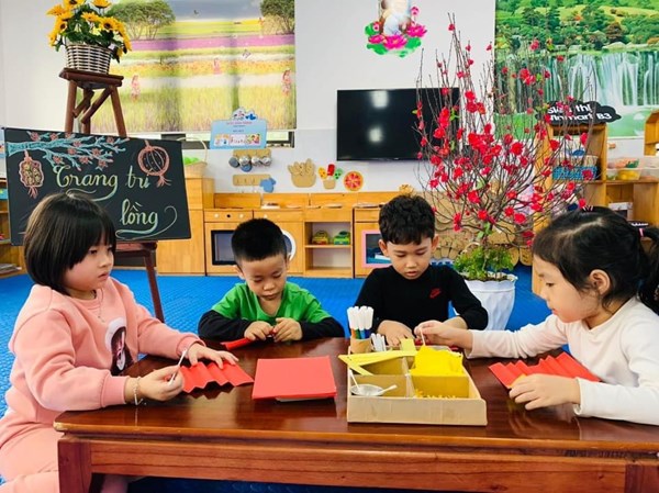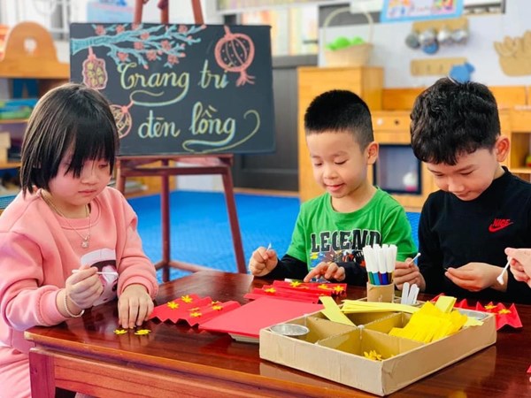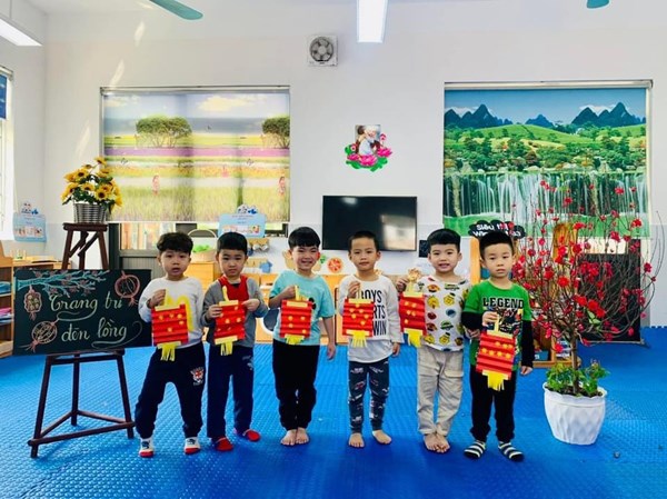 Tập ảnh : Các bé lớp MG nhỡ B3 hào hứng trang trí đèn lồng đón Tết