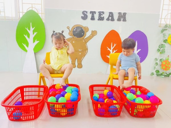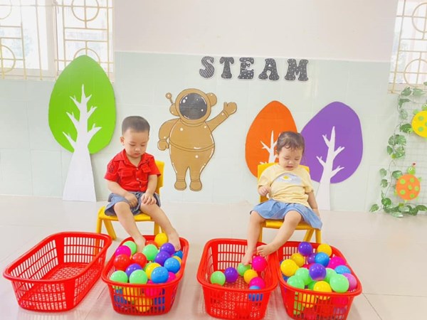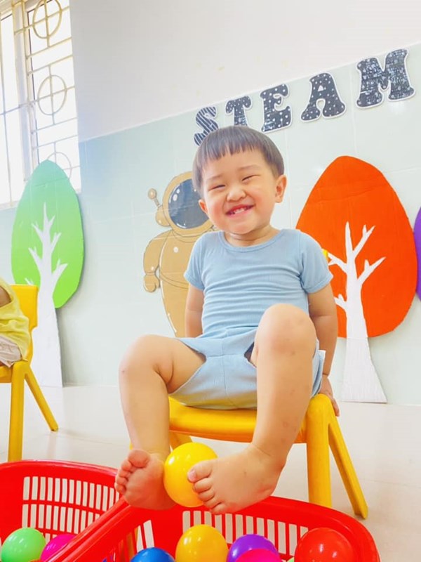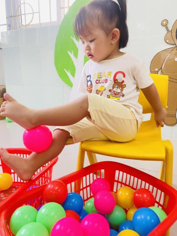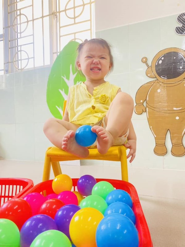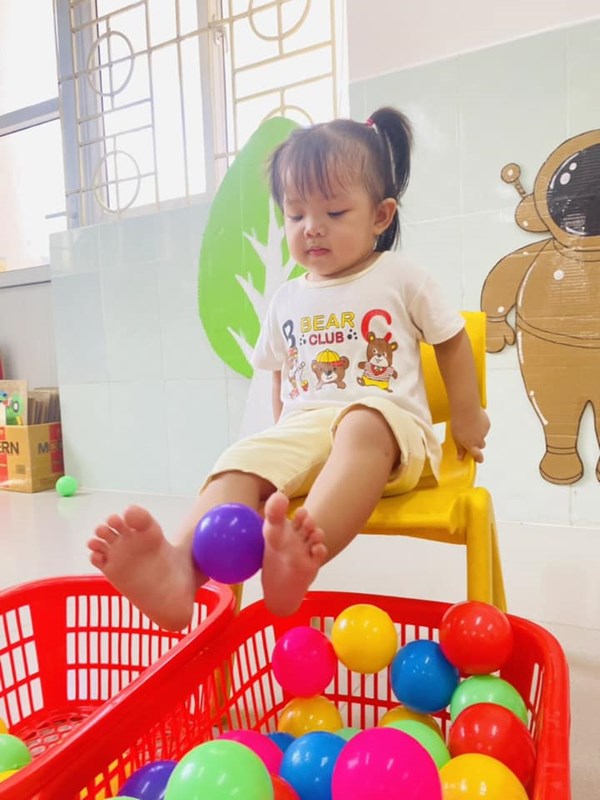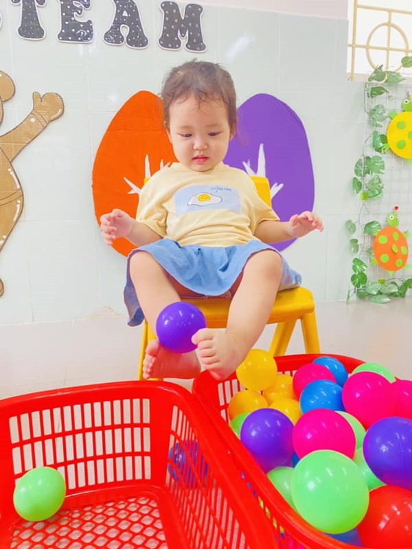 Tập ảnh : Các bé lớp nhà trẻ hào hứng tham gia trò chơi "Gắp bóng bằng hai chân"