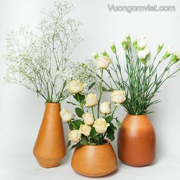 Cách cắm hoa hồng trên bình đất nung