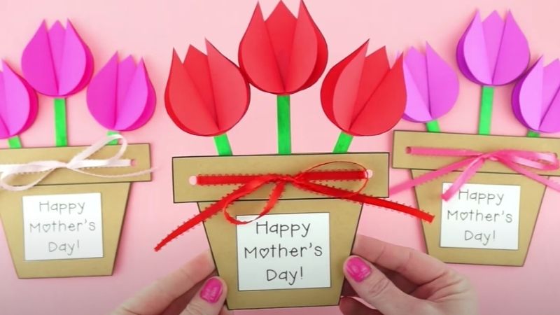 Một tấm thiệp đáng yêu vô cùng dễ làm cho các bé tập tành nghệ thuật thủ công. Bên cạnh đó là thấy được sự quyết tâm và chăm chỉ làm quà cho các mẹ yêu nữa. Thật ý nghĩa đúng không nào?