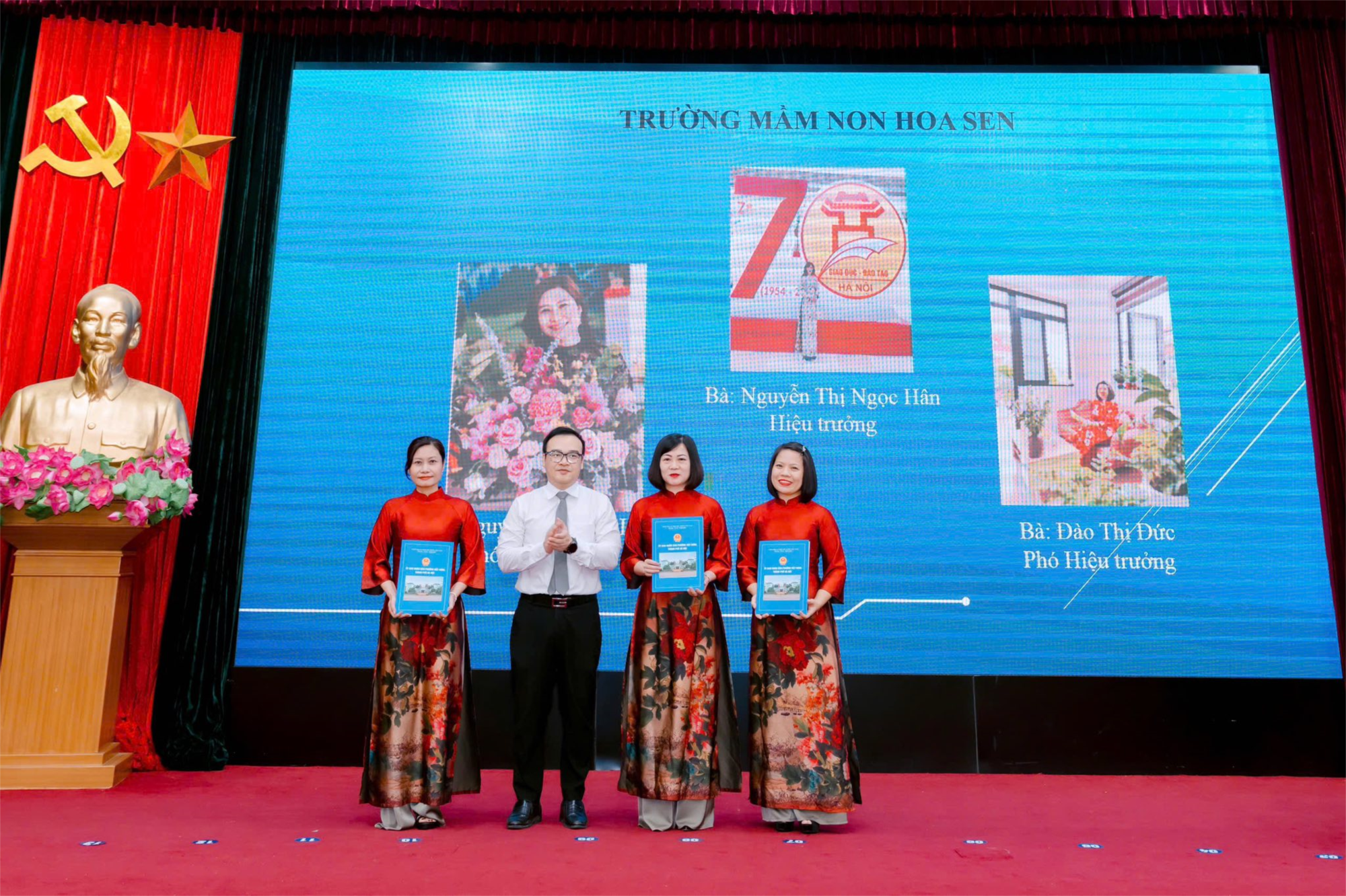 Cũng tại hội nghị, cùng với các đ/c viên chức quản lý tại các trường công lập trên địa bàn phường, Ban Giám Hiệu Trường MN Hoa Sen đã được nhận Quyết định bổ nhiệm viên chức giữ chức vụ hiệu trưởng, phó hiệu trưởng: