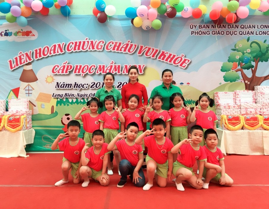 Trong hội thi làm tranh với chủ đề "Quê hương, đất nước, thủ đô Hà Nội, quận Long Biên" được tổ chức vào chiều ngày 03/04/2017, nhà trường có 02 cháu tham gia thi làm tranh. Và trong sáng nay, 04/04/2017, nhà trường có 10 cháu tham gia thi đấu trò chơi vận động "Lấy nước". Kết thúc liên hoan, nhà trường đã gặt hái được những thành tích đáng mừng, đó là: bé Trần Lê An Khanh - học sinh lớp MGL 3 đạt giải Nhì hội thi làm tranh, đội tuyển tham gia thi đấu trò chơi vận động cũng đã thi đấu hết mình và giành giải Nhì phần trò chơi.