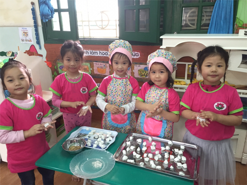 Sau đây là hình ảnh các bé tập nặn bánh trôi tại lớp: