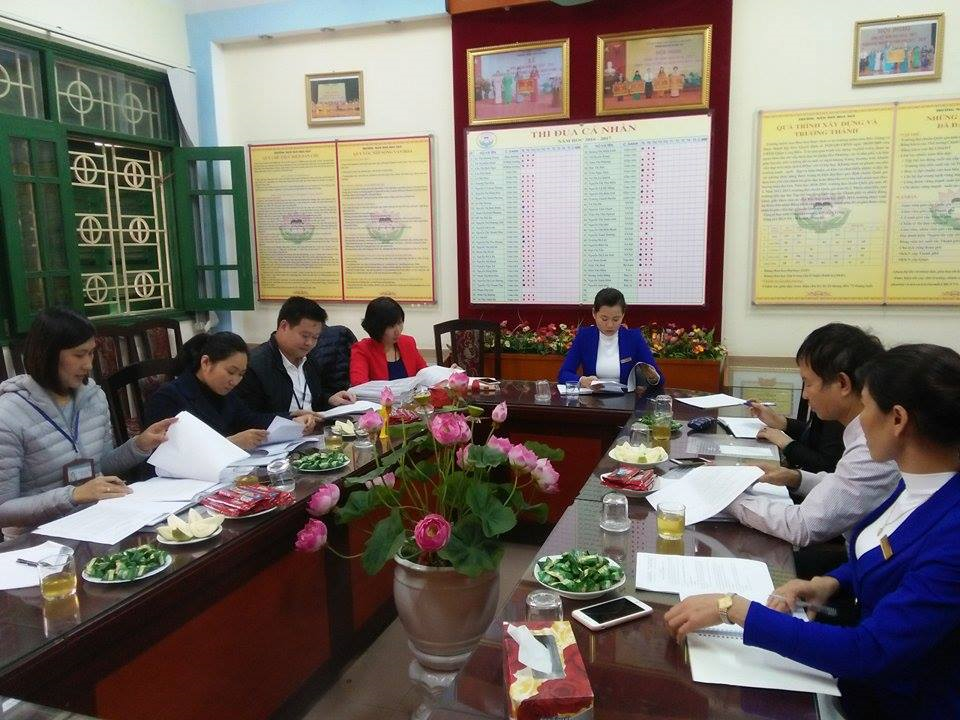Tại buổi làm việc, đ/c Lê Thị Hương Giang - Bí thư chi bộ - Hiệu trưởng nhà trường đã trình bày Báo cáo công tác thu - chi tài chính đầu năm học 2017 - 2018 của nhà trường với các nội dung cụ thể như: thuận lợi, khó khăn của nhà trường; tình hình đội ngũ CBGVNV; số lượng học sinh; kết quả học tập và giảng dạy năm học 2016 - 2017; tình hình triển khai nhiệm vụ năm học 2017 - 2018, công tác quản lý thu - chi đầu năm. Các thành viên trong đoàn kiểm tra cũng đã hoàn toàn nhất trí với báo cáo của nhà trường, đồng thời đưa ra một số ý kiến đóng góp để nhà trường làm tốt hơn nữa công tác thu chi tài chính đầu năm học.