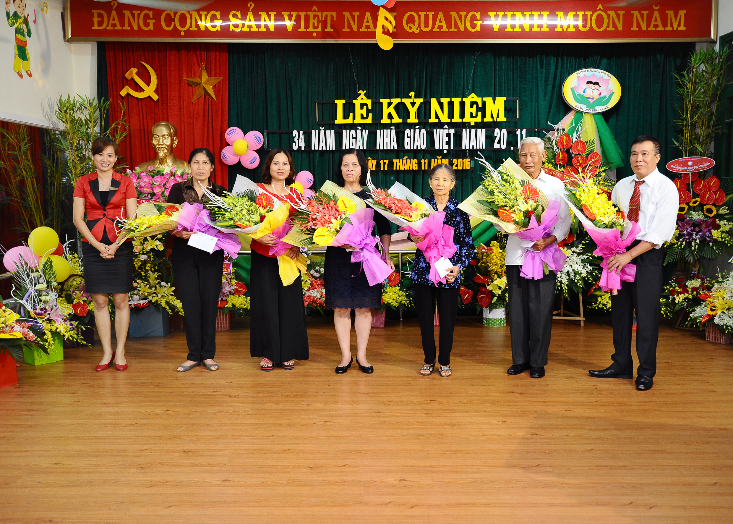 Hòa trong không khí tưng bừng phấn khởi chào mừng kỷ niệm 34 năm ngày Nhà giáo Việt Nam (20/11/1982 - 20/11/2016). Được sự quan tâm chỉ đạo của các cấp lãnh đạo PGD&ĐT quận Long Biên và Đảng ủy, UBND phường Đức Giang, vào hồi 17h00 ngày 17/11/2016, trường MN Hoa Sen đã long trọng tổ chức Lễ kỷ niệm ngày Nhà giáo Việt Nam nhằm ôn lại những truyền thống tốt đẹp của ngành giáo dục, sự tôn vinh, trân trọng của xã hội đối với sự nghiệp cao cả của các thầy cô giáo, những con người đã và đang ngày ngày cống hiến cho sự nghiệp “Trăm năm trồng người” như lời Bác Hồ kính yêu đã dạy.