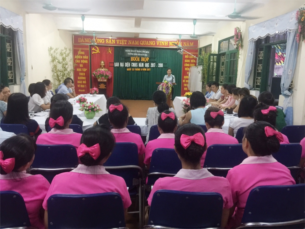 Vào hồi 17h00 hôm nay, ngày 25/9/2017, tại phòng hội trường của trường MN Hoa Sen đã diễn ra buổi họp phụ huynh đầu năm học 2017 - 2018. Buổi họp với sự có mặt của các đồng chí trong ban giám hiệu nhà trường, các đồng chí giáo viên chủ nhiệm lớp và gần 30 vị phụ huynh là đại diện cha mẹ học sinh của các lớp.