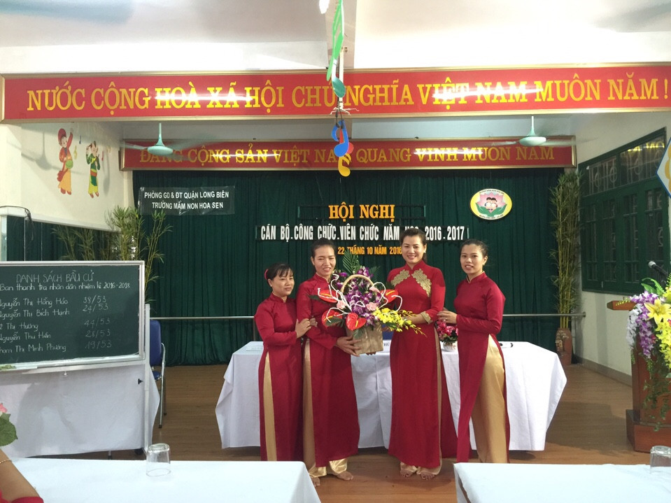 Sáng nay, ngày 22/10/2016, trường mầm non Hoa Sen đã tổ chức thành công Hội nghị cán bộ công chức viên chức năm học 2016 - 2017. Hội nghị được diễn ra với sự có mặt của toàn thể CBGVNV nhà trường. Tại hội nghị, các đại biểu đã được nghe đoàn chủ tịch trình bày các báo cáo tổng kết năm học, phương hướng hoạt động năm học mới của nhà trường, công đoàn và ban thanh tra nhân dân. Đồng thời, hội nghị cũng đã bầu ra ban thanh tra nhân dân nhiệm kỳ 2016 - 2018 gồm 3 đồng chí.