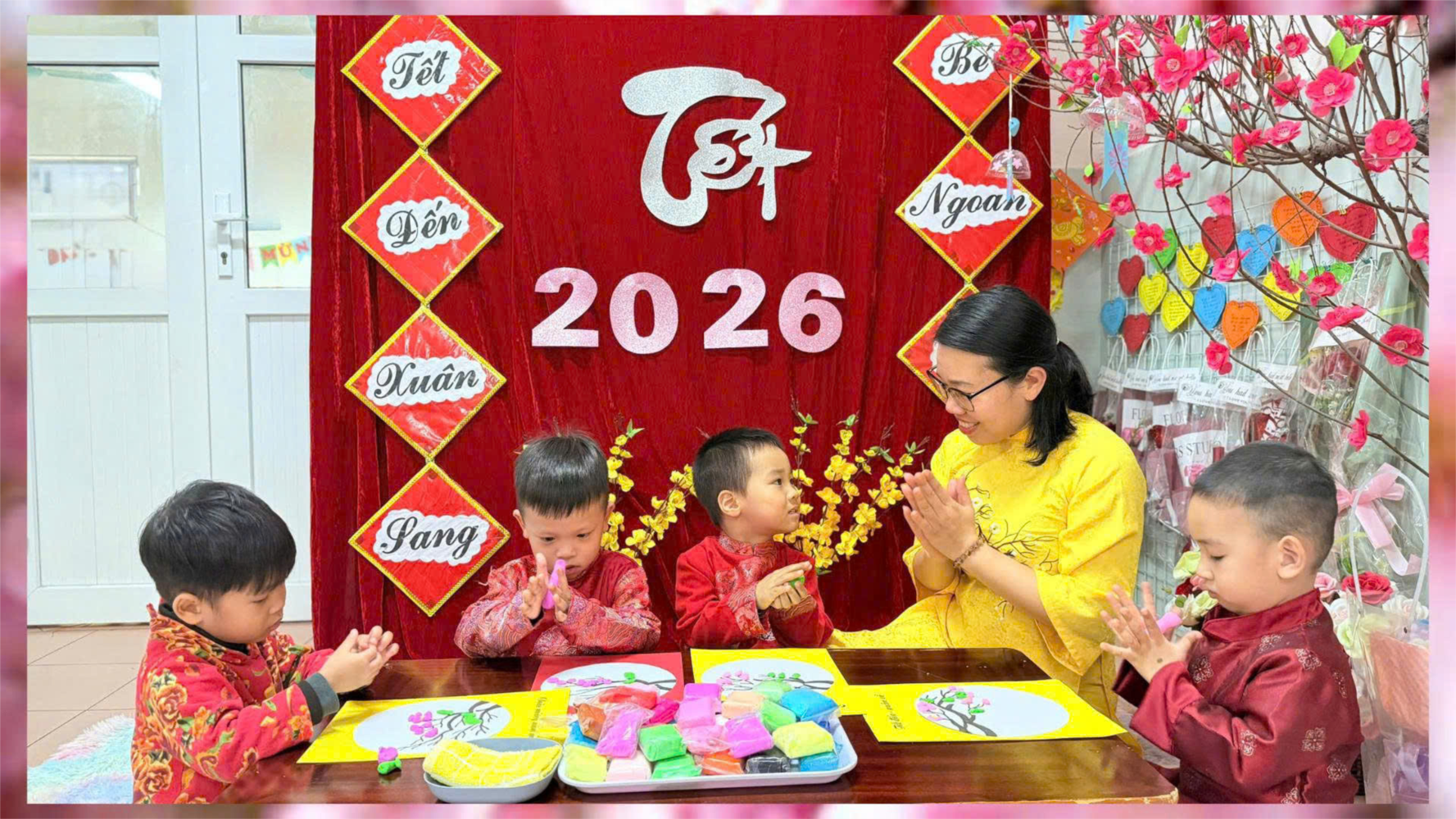 Thông qua hoạt động, các bé không chỉ được rèn luyện kỹ năng vận động tinh, phát triển sự khéo léo và khả năng thẩm mỹ mà còn được khơi gợi niềm yêu thích đối với các hoạt động nghệ thuật. Đồng thời, hoạt động còn giúp trẻ hiểu thêm về nét đẹp văn hóa truyền thống trong ngày Tết cổ truyền của dân tộc, từ đó hình thành tình yêu quê hương, đất nước ngay từ những năm tháng đầu đời.