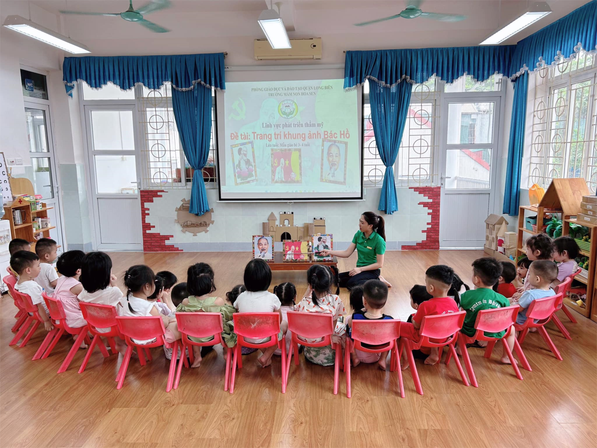 Sau chuyến đi tham quan Lăng Bác đầy ý nghĩa mà trường tổ chức và để tỏ lòng biết ơn Người, cô và trò lớp Mẫu giáo bé C3 đã có 1 giờ học tạo hình “trang trí khung ảnh Bác Hồ” đầy hấp dẫn và sôi nổi.