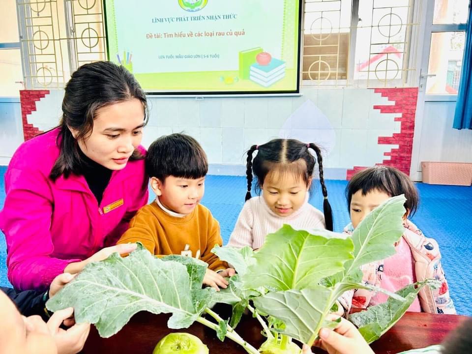 nay, các bạn nhỏ lớp mẫu giáo lớn A3 tham gia hoạt động khám phá về một số loại rau, củ,