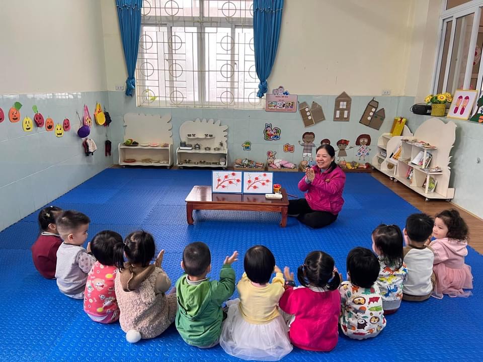 Các cô giáo thật sáng tạo, khéo léo khi sử dụng những nguyên vật liệu tái chế để làm đồ dùng, đồ chơi và những bức tranh độc đáo, tuyệt đẹp… trang trí môi trường lớp học cho các bé.