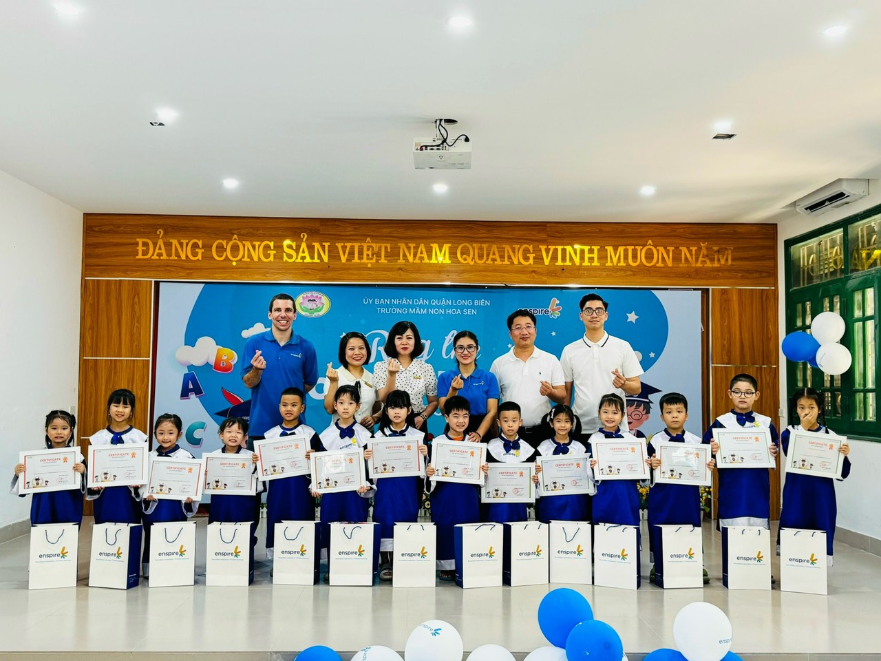 Sáng ngày 16/4/2024, Trường mầm non Hoa Sen đã phối hợp với Trung tâm ngoại ngữ Enspire tổ chức cuộc thi "Rung chuông vàng - Chung kết toả sáng tài năng Tiếng Anh cùng Ensprise 2024" cho các bé yêu ở cả 3 độ tuổi MG bé, MG nhỡ và MG lớn.