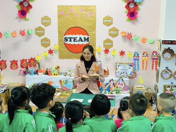 Hoạt động dự án rèn luyện cho trẻ khả năng tư duy, sáng tạo. Sau khi làm chiếc bè, các bạn nhỏ rất thích thú và tự hào khi thuyết trình về sản phẩm của mình và được thử nghiệm thả bè nổi trên mặt nước.