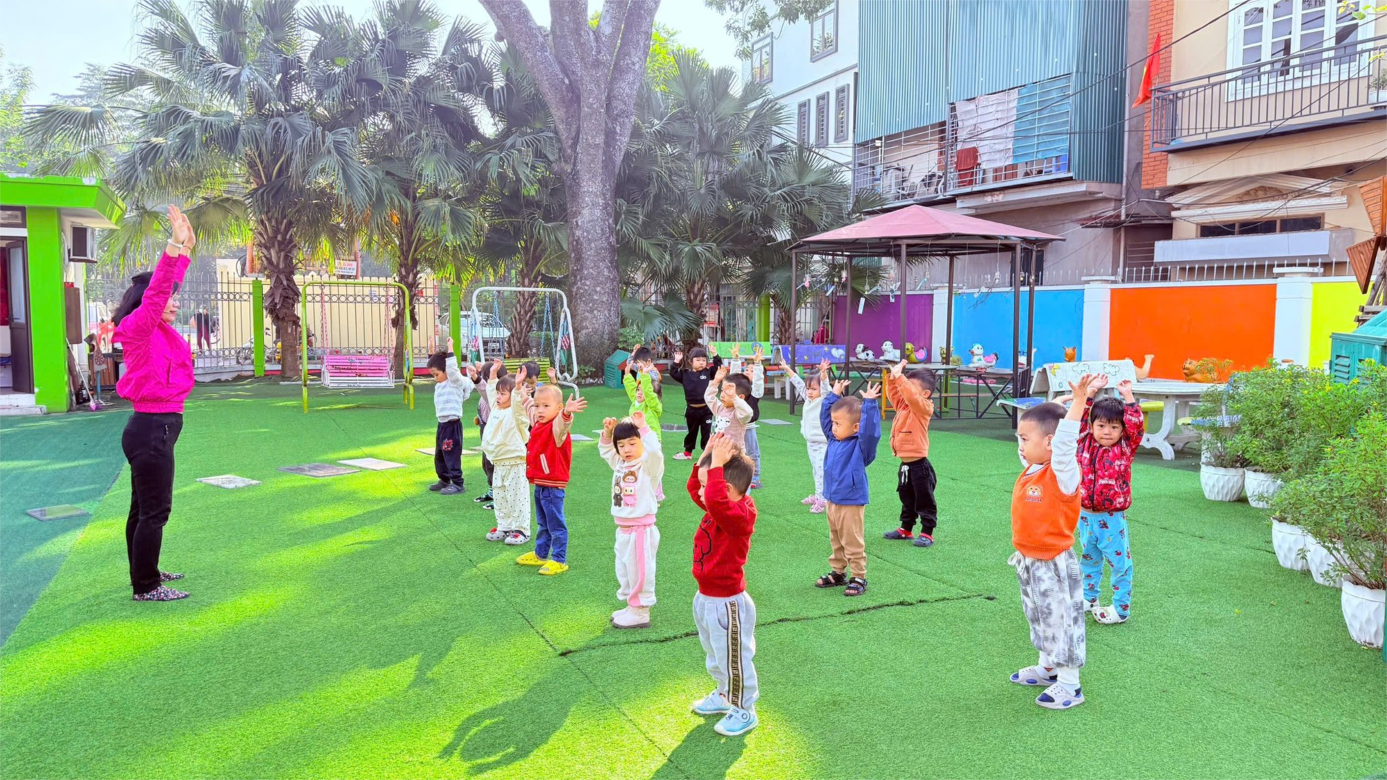 Hoạt động này không chỉ góp phần tăng cường thể lực, mà còn giúp các con thêm mạnh dạn, tự tin và gắn kết hơn với bạn bè. Mỗi bài tập, mỗi trò chơi đều trở thành những trải nghiệm ý nghĩa, nuôi dưỡng tinh thần vui học của bé mỗi ngày.