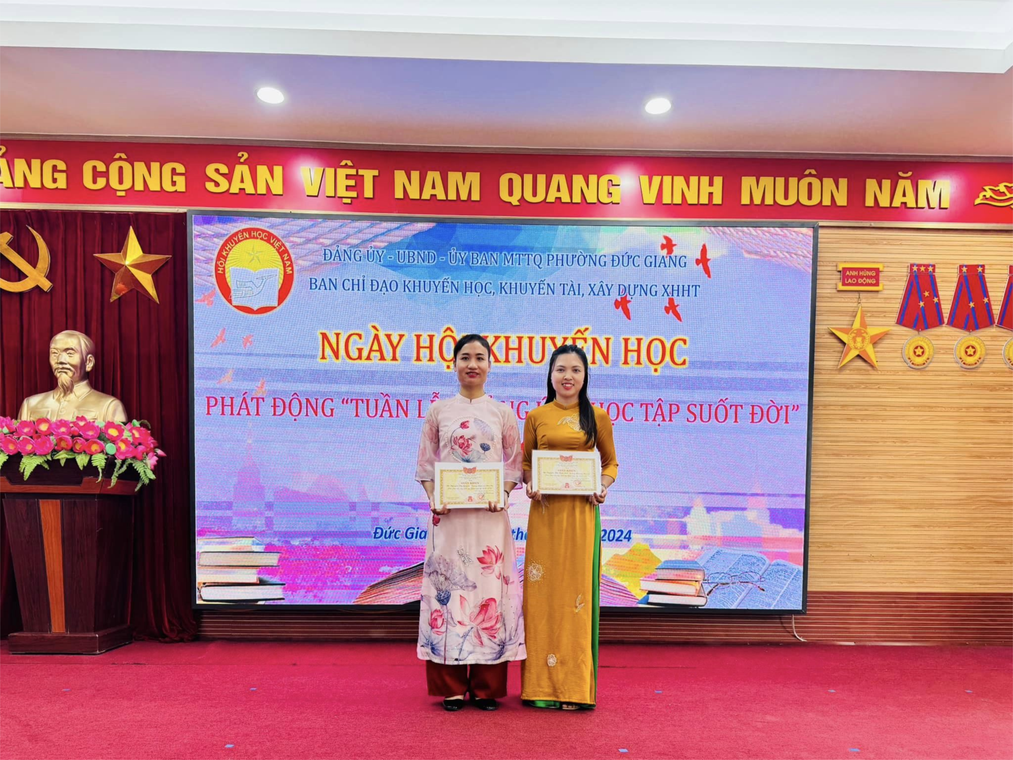 Sáng 29/9/2024, Hội khuyến học phường Đức Giang đã tổ chức Ngày hội khuyến học và phát động “Tuần lễ học tập suốt đời” năm 2024 nhằm tuyên dương, khen thưởng các cá nhân, tập thể có thành tích tốt.