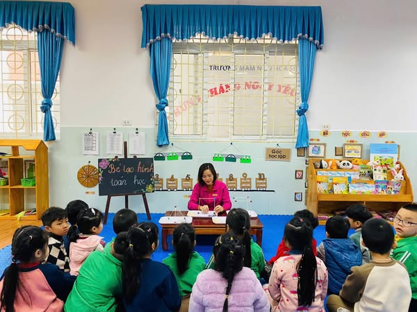 Hình vuông, hình chữ nhật, hình tam giác – những hình khối quen thuộc trong thế giới xung quanh đã trở thành nguồn cảm hứng cho các bạn nhỏ lớp Mẫu giáo lớn A1 trong hoạt động tạo hình hôm nay.