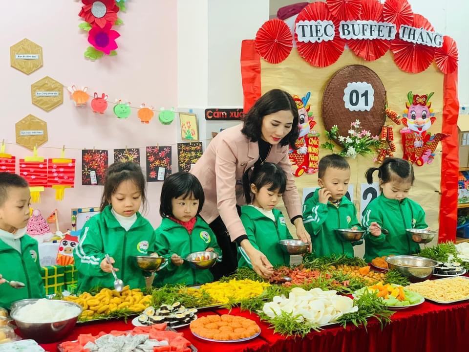 Nằm trong chuỗi các hoạt động chào đón xuân Giáp Thìn 2024, tiệc Buffet tất niên là hoạt động mà bé nào cũng háo hức, mong chờ. Tại bữa tiệc liên hoan, các bé không những được thưởng thức nhiều món ăn yêu thích mà các bé còn được rèn kỹ năng lịch sự trong ăn uống, được giao lưu với các bạn.... Chúc các bé hay ăn chóng lớn và khoẻ mạnh nhé!