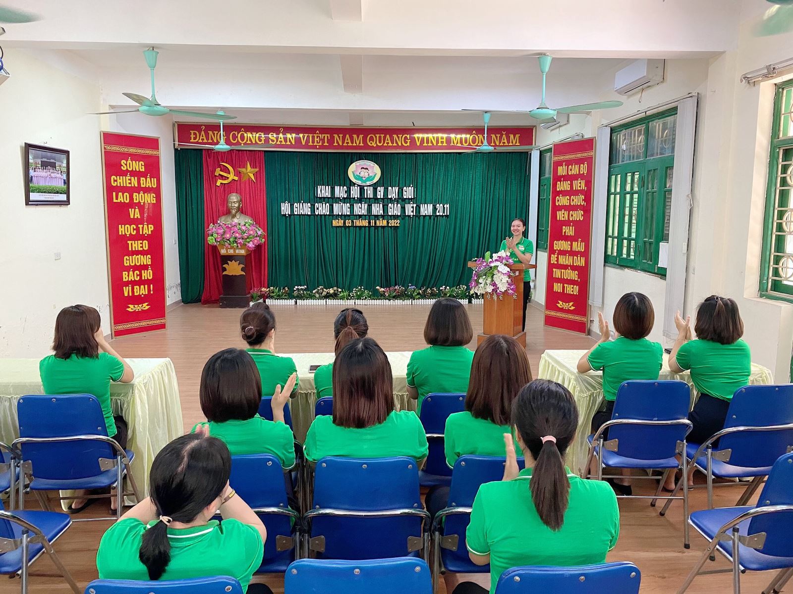 Sáng thứ Năm, ngày 03/11/2022, trường mầm non Hoa Sen đã tổ chức Khai mạc Hội thi giáo viên dạy giỏi - Hội giảng chào mừng ngày nhà giáo Việt Nam 20/11 với sự tham gia của các đ/c trong BGH cùng toàn thể giáo viên, nhân viên nuôi dưỡng của nhà trường.