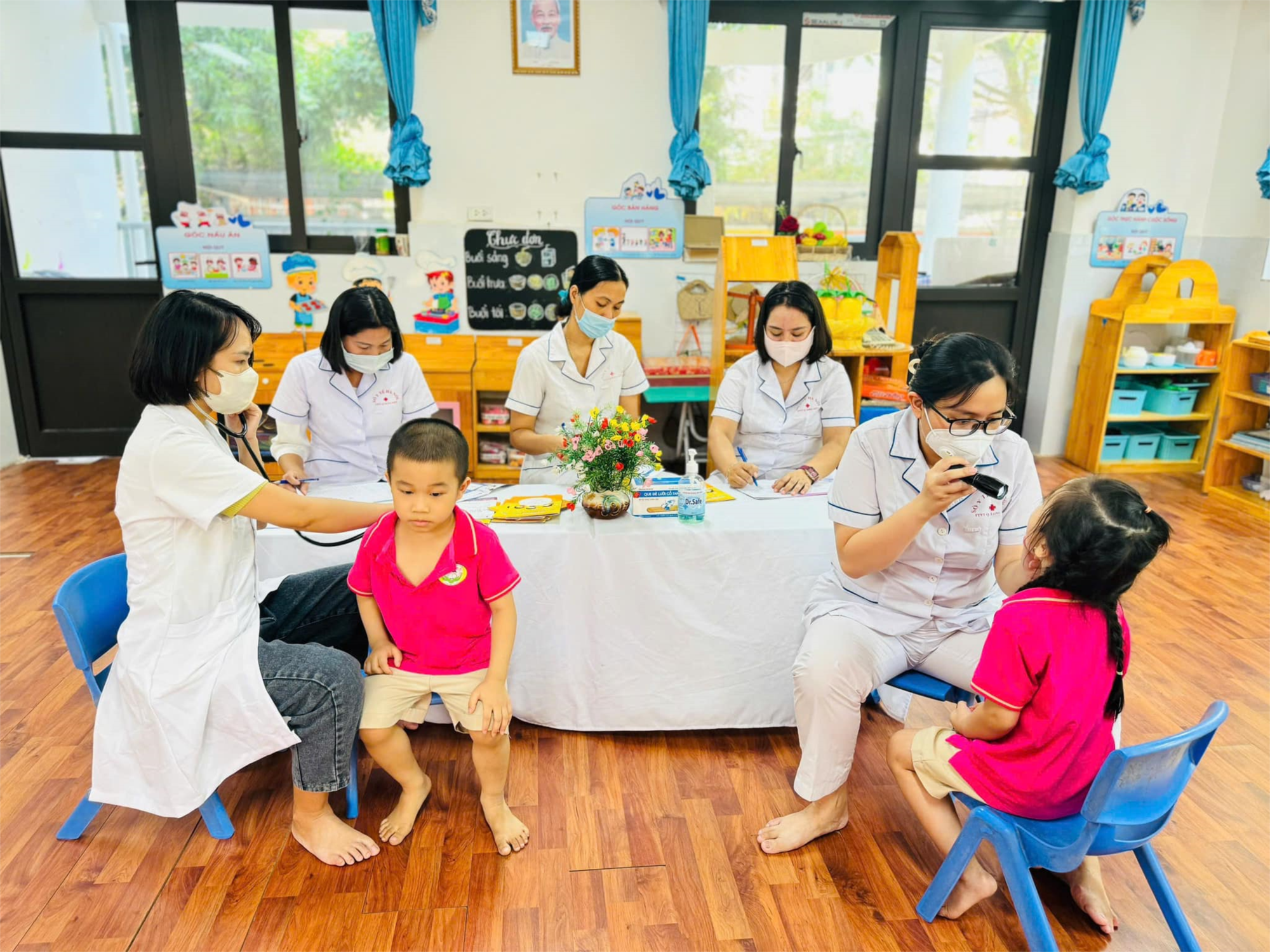 Mọi công tác chuẩn bị về cơ sở vật chất, các điều kiện phục vụ cho công tác khám sức khoẻ định kỳ đã được nhà trường chuẩn bị chu đáo, từ việc liên hệ phối hợp với trạm y tế phường để chuẩn bị các dụng cụ y tế, thông báo để phụ huynh nắm rõ lịch và cho con tham gia khám sức khoẻ đầy đủ.