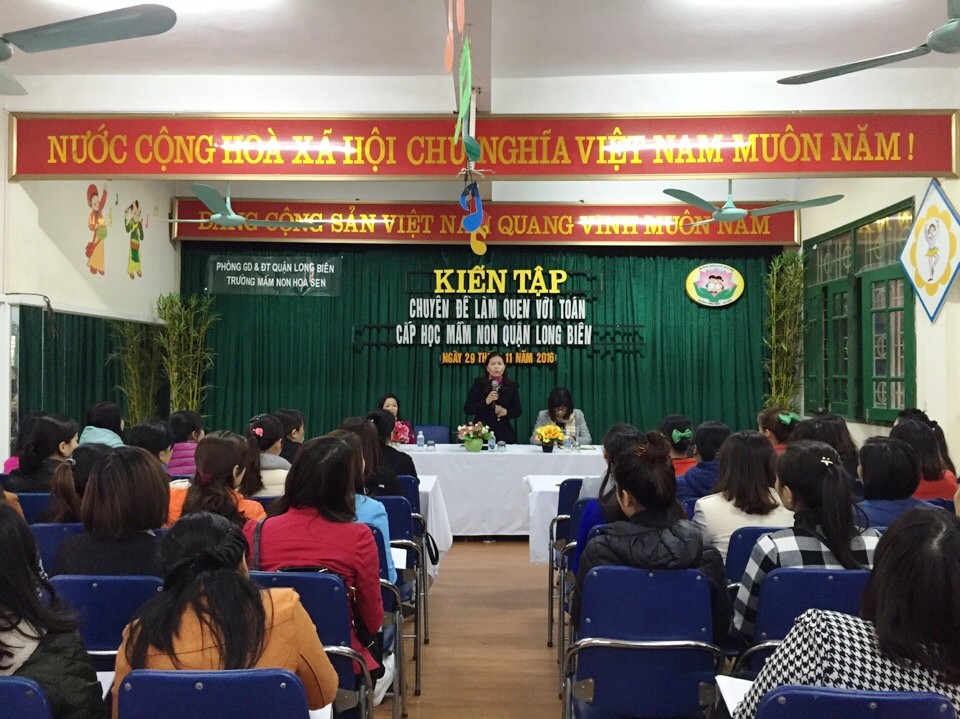 Thực hiện nhiệm vụ năm học 2016 - 2017, thực hiện vai trò làm điểm chuyên đề "Làm quen với toán" cho cấp học MN quận Long Biên. Sáng ngày 29/11/2016, trường MN Hoa Sen phối hợp với phòng GD&ĐT quận Long Biên tổ chức buổi kiến tập chuyên đề "Làm quen với toán" với 4 hoạt động thuộc 4 lứa tuổi.