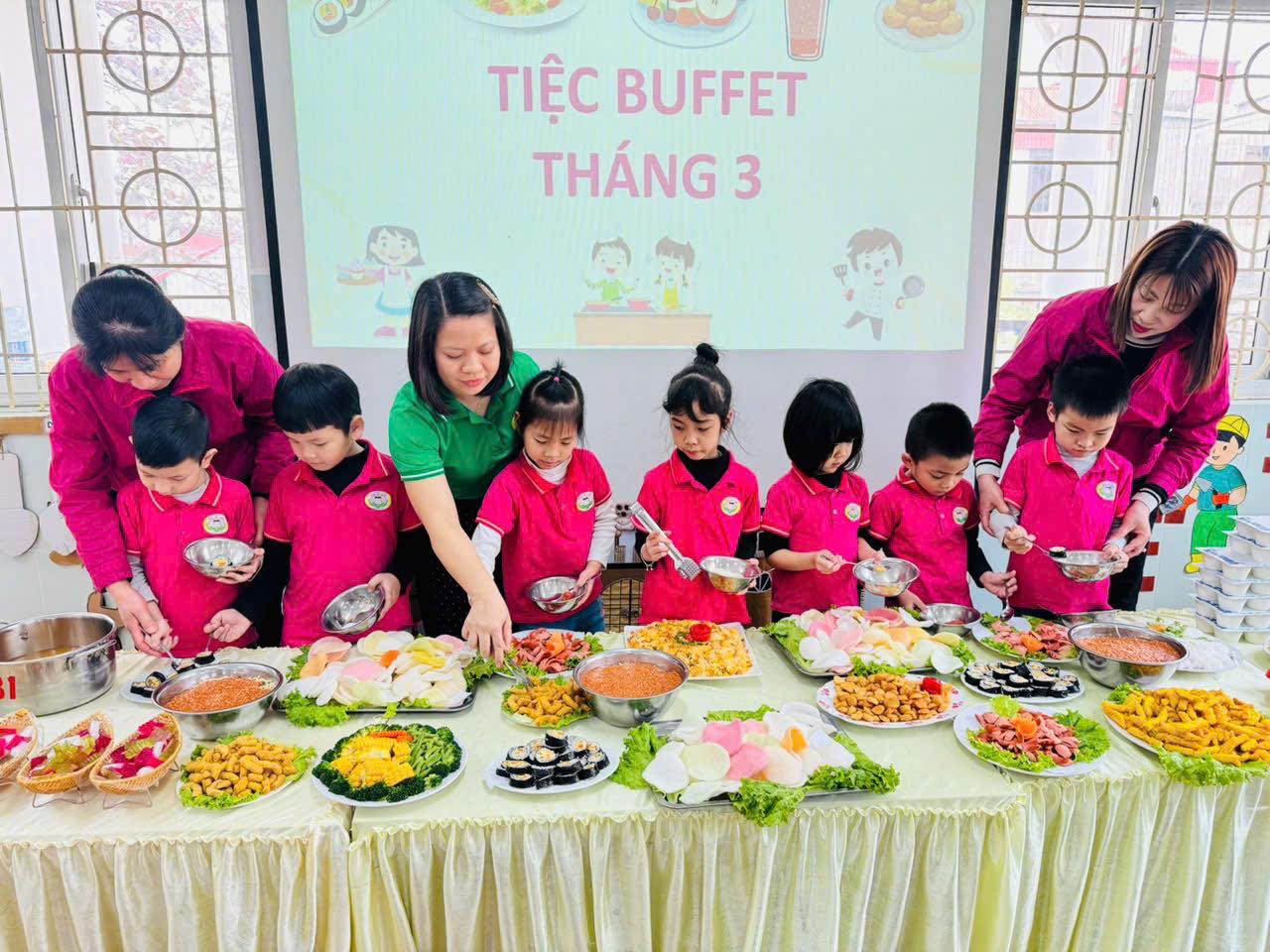 Dưới đây là một số hình ảnh các bé tham gia tiệc buffet: