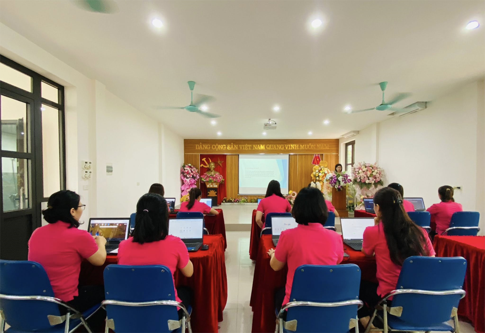 Qua hướng dẫn, trao đổi, cùng chia sẻ kiến thức, kĩ năng ứng dụng AI, các đ/c giáo viên đã nắm bắt được những đổi mới về công nghệ thông tin hỗ trợ đắc lực cho công tác giáo dục trong thời đại số.