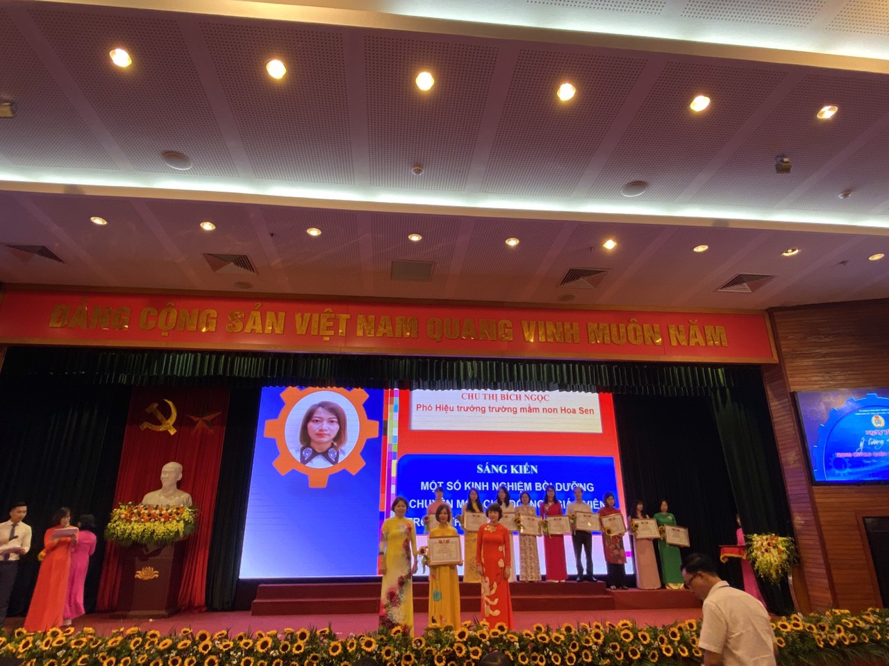 Cô giáo Chu Thị Bích Ngọc - Phó Hiệu trưởng nhà trường vinh dự là một trong số 81 cá nhân có sáng kiến tiêu biểu tham gia giai đoạn 1 của Chương trình được LĐLĐ quận Long Biên tặng Giấy khen và trưng bày sáng kiến tại Ngày hội. Đây là thành tích xứng đáng cho những sáng tạo không ngừng nghỉ, những nỗ lực hết mình trong công việc mà cô giáo Chu Thị Bích Ngọc luôn thể hiện trong công việc hàng ngày.