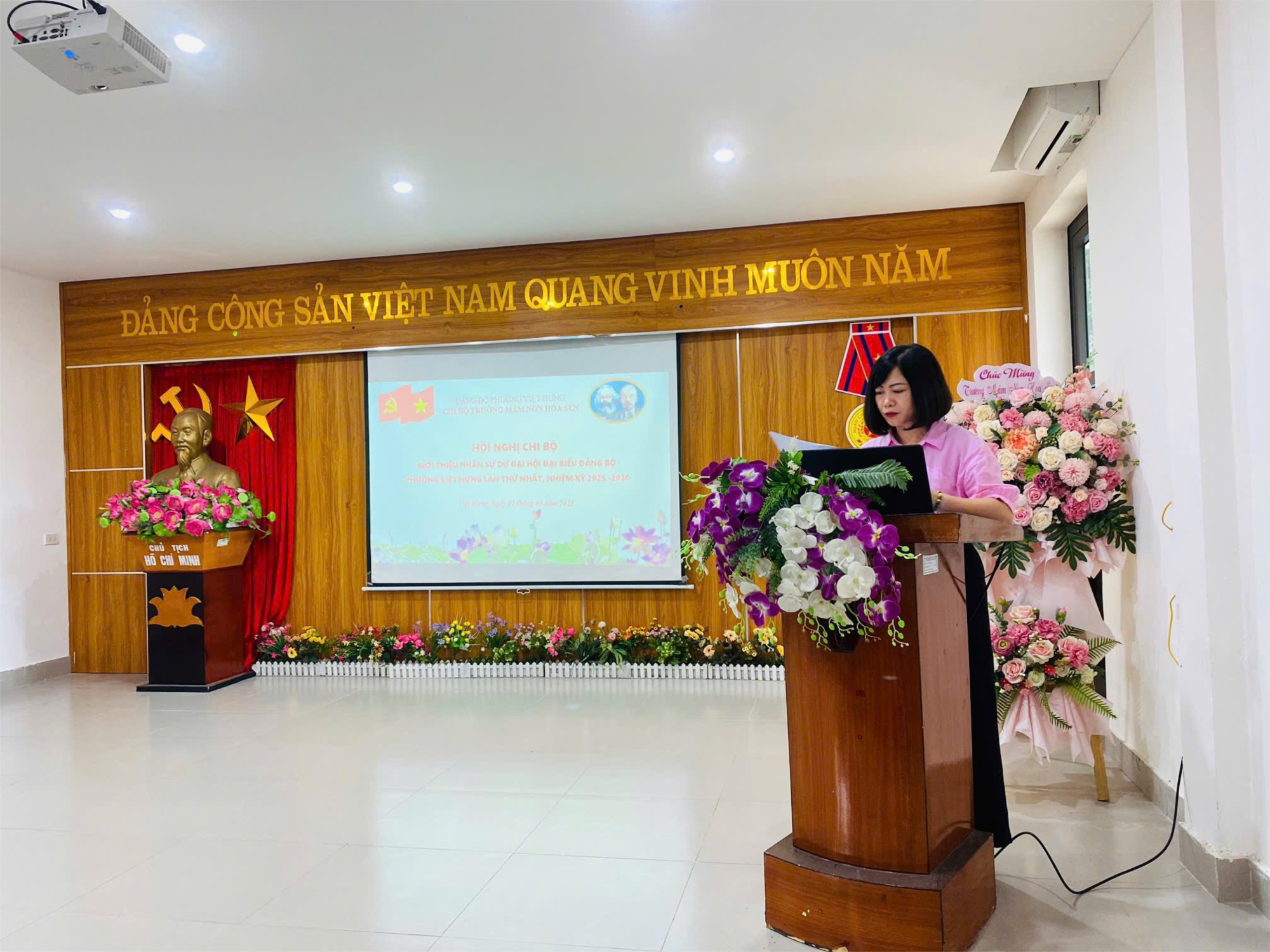 Chi bộ Trường MN Hoa Sen đã thực hiện xây dựng danh sách giới thiệu nhân sự, tiến hành tổ chức Hội nghị cấp uỷ , thảo luận, thông qua danh sách nhân sự gồm 01 đại biểu chính thức và 01 đại biểu dự khuyết theo đúng nguyên tắc giới thiệu, lựa chọn. Chiều ngày 01/08/2025, Chi bộ đã tổ chức Hội nghị Chi bộ giới thiệu nhân sự dự đại hội đại biểu Đảng bộ phường Việt Hưng lần thứ nhất, nhiệm kỳ 2025 -2030 với 100% đảng viên tham dự. Kết quả kiểm phiếu được công bố tại Hội nghị: