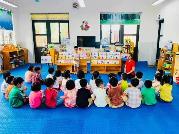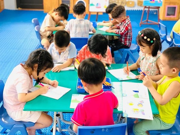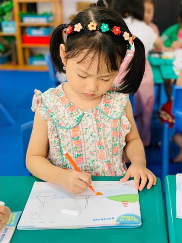 Tập ảnh : Hoạt động tạo hình 'Tô nét và tô màu bức tranh thuyền buồm - Lớp MG nhỡ B3