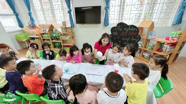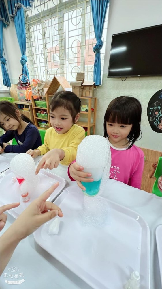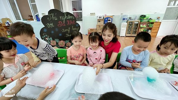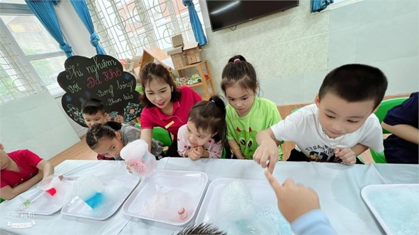 Tập ảnh : Hoạt động thí nghiệm với đá khô - Lớp mẫu giáo lớn A1