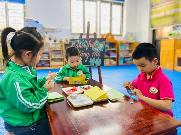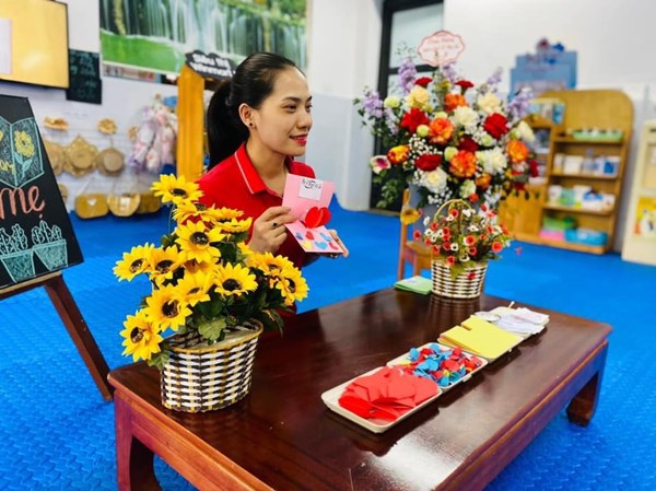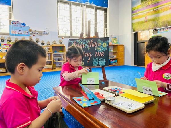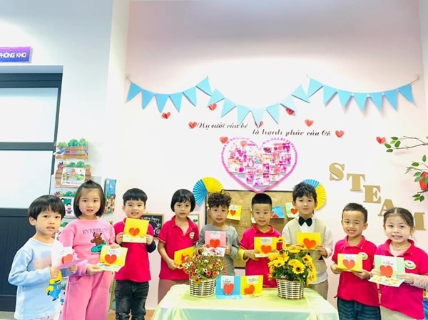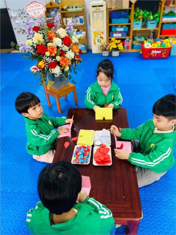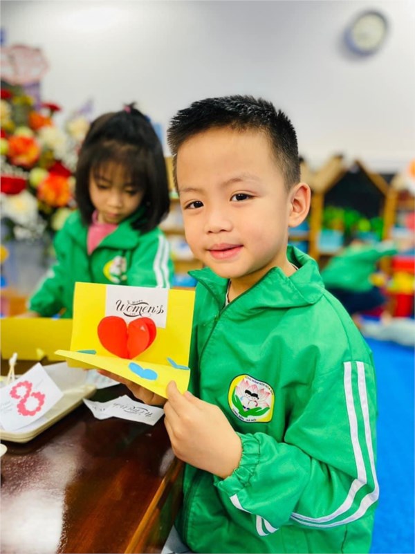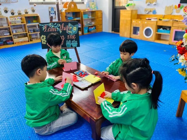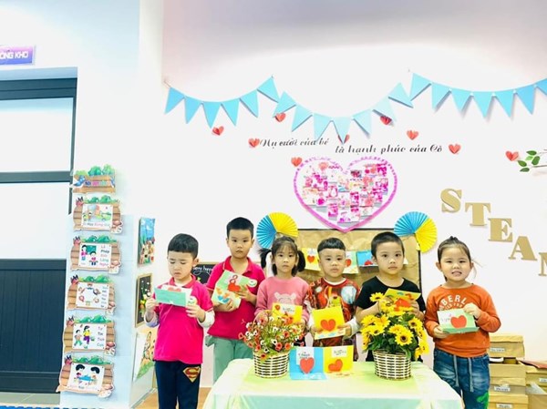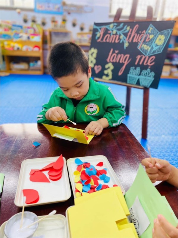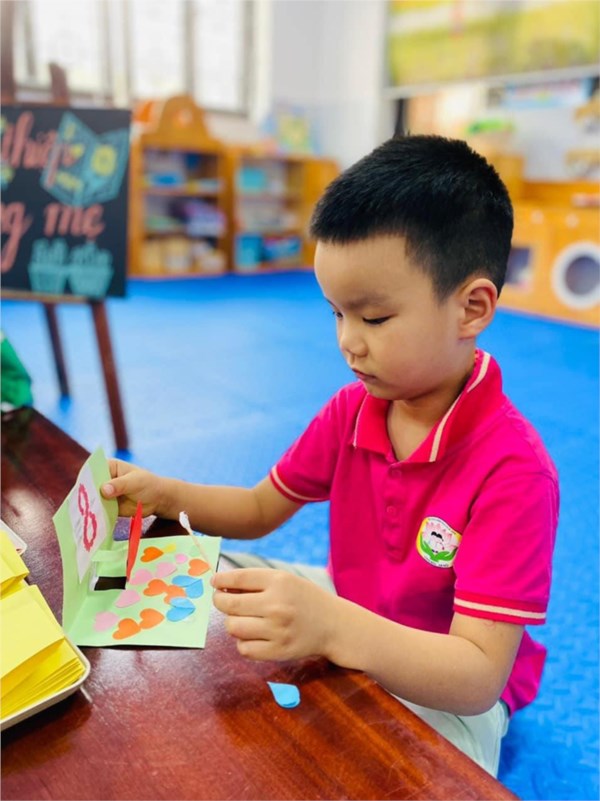 Tập ảnh : Làm bưu thiếp tặng bà, tặng mẹ 8/3- Lớp MG nhỡ B3