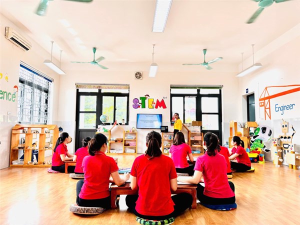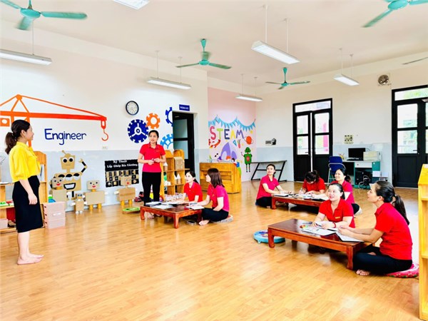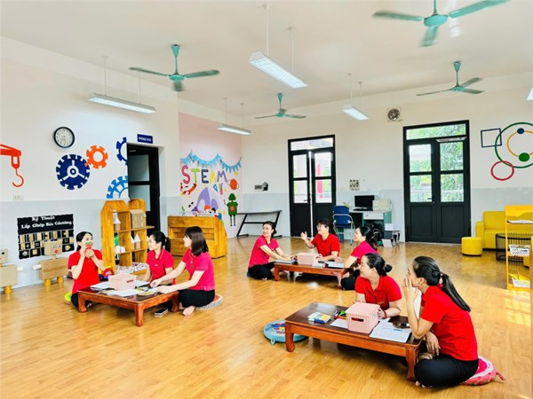Tập ảnh : Sinh hoạt chuyên môn: “Ứng dụng phương pháp của trường quốc tế Unis trong việc tổ chức hoạt động phát triển ngôn ngữ cho trẻ mầm non"