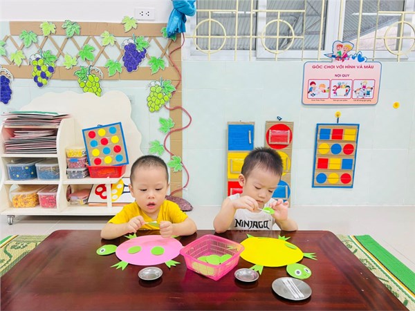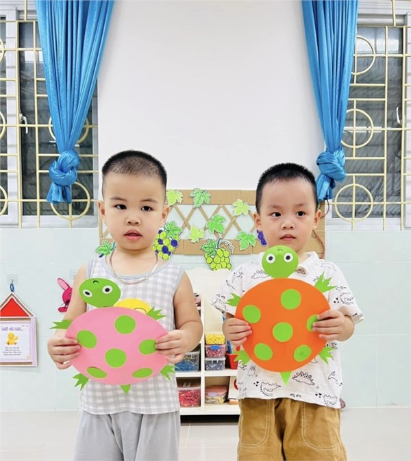 Tập ảnh : Tạo hình "Dán chú rùa từ những hình tròn" - Lớp Nhà trẻ D1