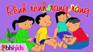 Rềnh rềnh ràng ràng Ba gang chiếu trải Xích lại cho gần Một người hai chân Hai người bốn chân Ba người sáu chân Bốn người tám chân Năm người mười chân. | Chân gầy chân béo Chân béo chân gầy Dệt vải cho bà Vải hoa vải trắng Đến mai trời nắng Đem vải ra phơi Đến mốt đẹp trời Đem ra may áo. |
