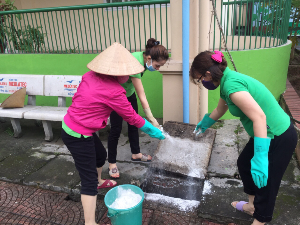Với tinh thần hăng hái, tích cực nhằm giữ gìn môi trường sư phạm sạch đẹp, an toàn và không dịch bệnh, CBGVNV nhà trường đã hoàn thành các nội dung công việc như: quét dọn nước đọng, rêu mốc, thu gom lá rụng tại các bồn cây, sân cỏ, cọ rửa vệ sinh các thùng đựng rác, làm cỏ vườn trường, nạo vét khơi thông cống rãnh và rắc vôi bột, quy hoạch sắp xếp kho để bình nước uống...