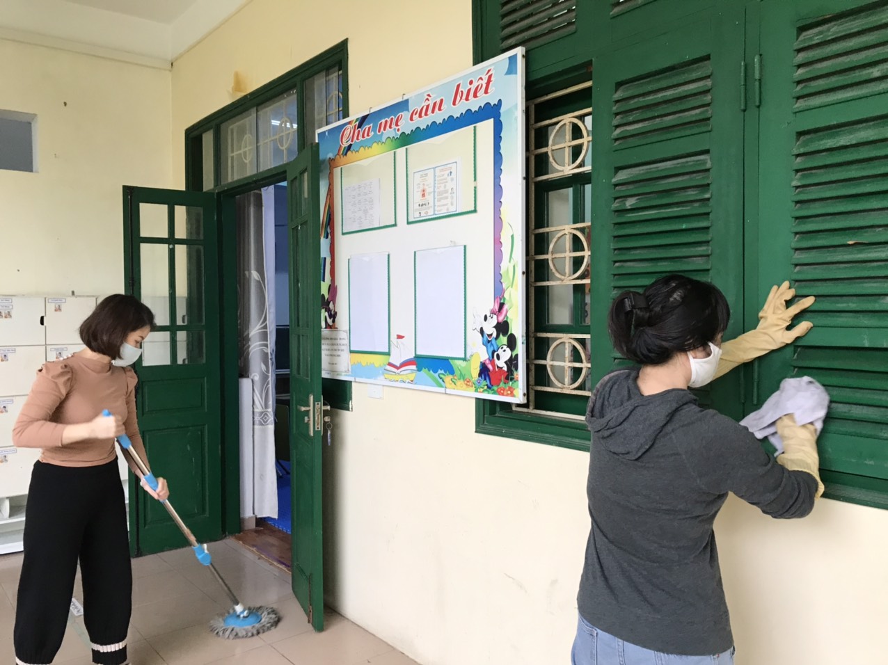 Vào hồi 08h00 sáng nay, ngày 01/03/2021, toàn thể CBGVNV trường MN Hoa Sen đã đến trường thực hiện công tác tổng vệ sinh môi trường, lau dọn, khử khuẩn để chuẩn bị đón học sinh trở lại trường sau thời gian tạm dừng đến trường để phòng, chống dịch Covid-19.