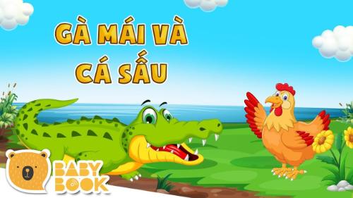 Ngay khi Gà Mái đến bờ nước, một con cá sấu to tướng nhảy lên và lấy hàm răng nhọn vồ chị ta. Cá Sấu sắp nuốt thì Gà Mái kêu lên: