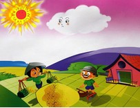 – Chị đang bận rủ các bạn mây các nơi về làm mưa đây. Em có muốn làm mưa không?.