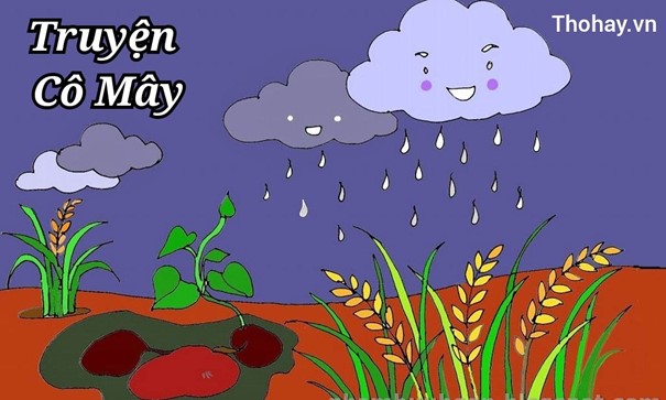 Thế là cô Mây trên trời cao đã hóa thành dòng nước chảy tràn khắp ao hồ, đồng ruộng, sông ngòi. Vài hôm nữa bác mặt trời chiếu xuống nước bốc thành hơi. Chị Gió lại đưa nước lên trở thành Mây.