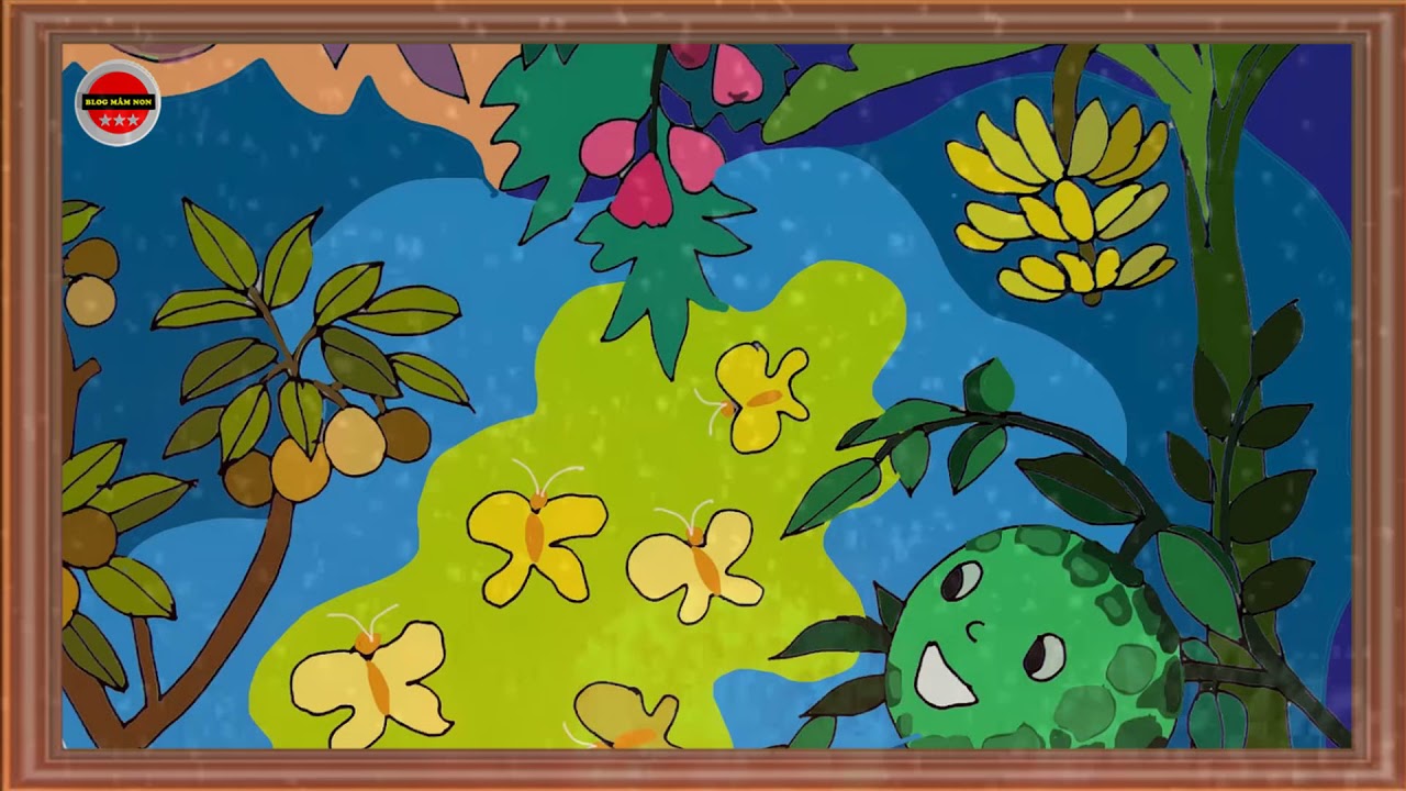g Chuối Tiêu đang chăm những quả chuối mập vàng; bà Hồng Xiêm quanh năm cần mẫn với chiếc áo nâu bạc phếch; cô Vú Sữa tròn trịa e ấp giấu mình trong những tán lá tím sẫm với những hạt sương long lanh muôn sắc màu bởi ánh nắng mặt trời buổi sớm; kia nữa, các cô bướm chuẩn bị những chiếc áo vàng tươi như đi xem hội và chị Hồng mới rực rỡ làm sao trong chiếc áo màu đỏ; còn những anh Roi Đường nghịch ngợm đu tít trên cành cao với bao trò chơi con trẻ.