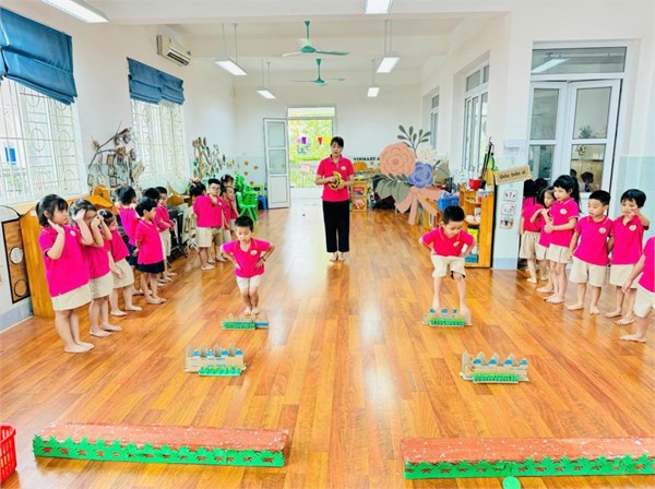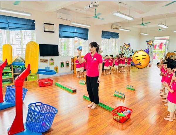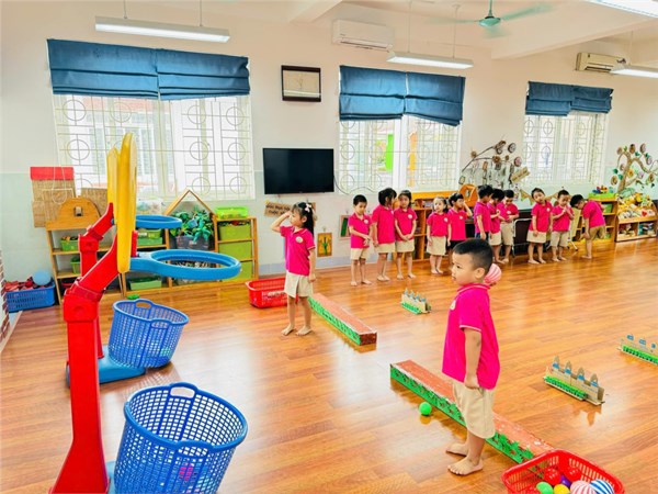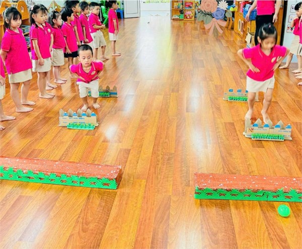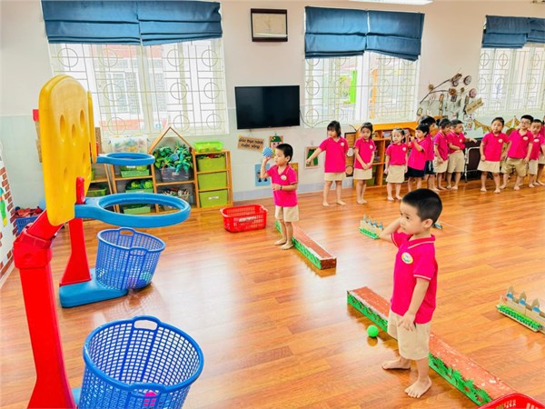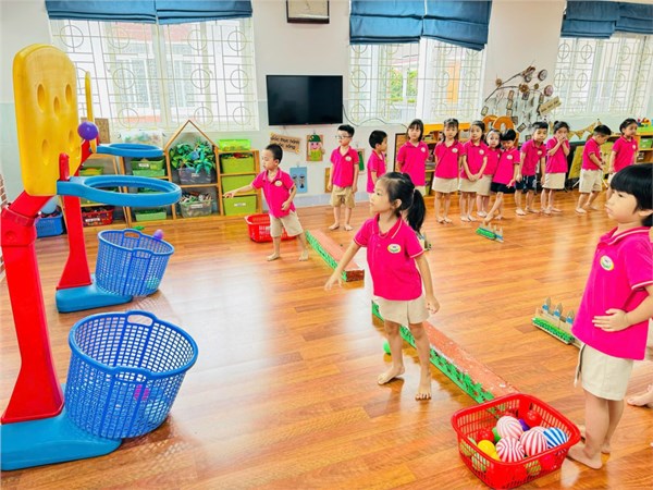 Tập ảnh : Vận động : Bật qua vật cản - Ném bóng vào rổ - Lớp MG lớn A2